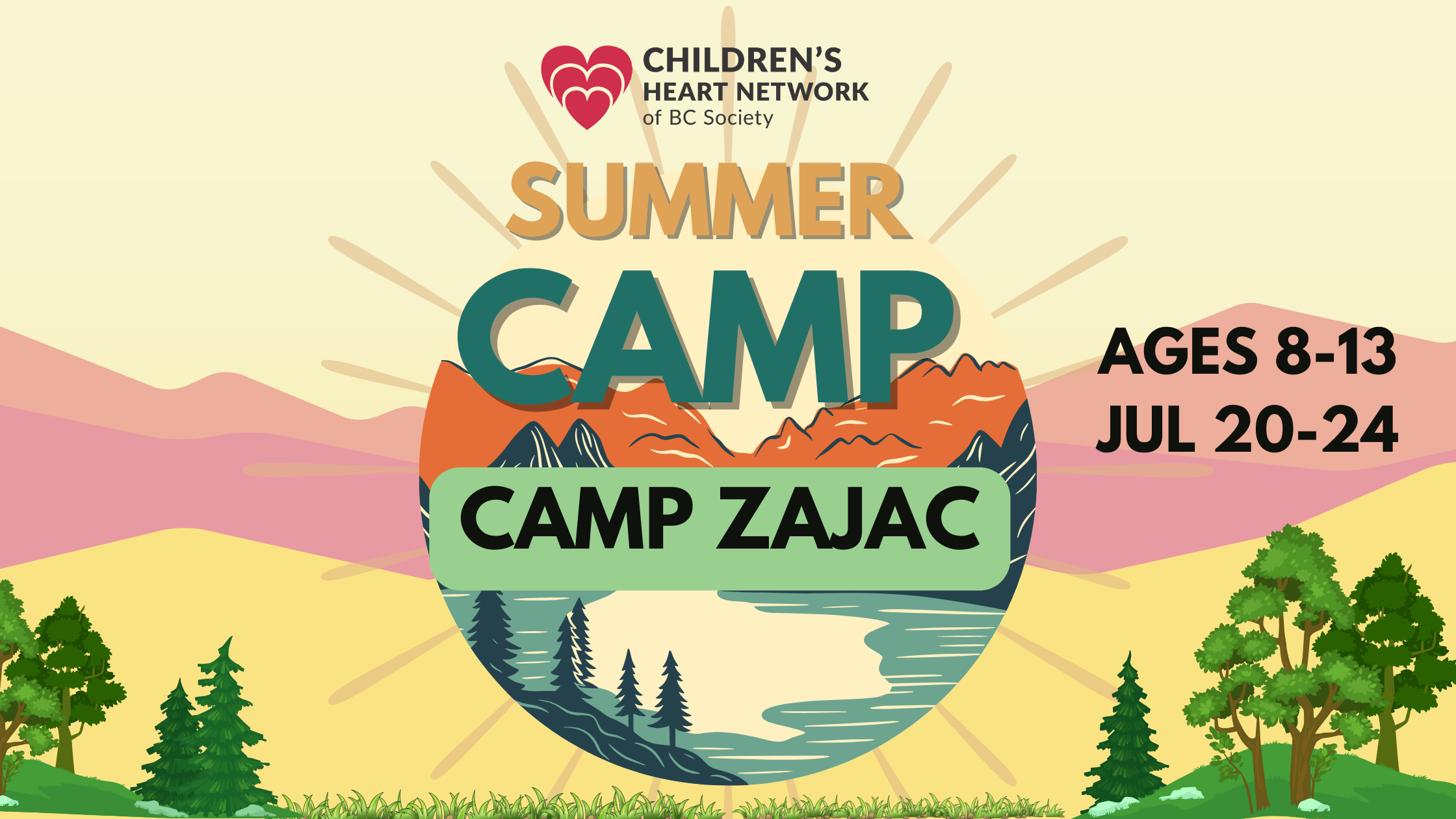 Camp Zajac 15600 Florence Lake Rd, Mission 1, BC, CanadaThe Children’s Heart Network invites all members between the ages of 8 to 13 to come to “Camp Zajac” from Monday, July 20th to Friday, July 24th. Have a great time while connecting with other heart kids your age. Swimming, Ropes Course, Arts & Crafts, Games, Horseback Riding, Campfires and more!